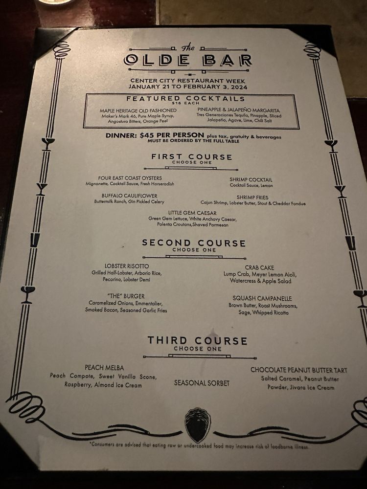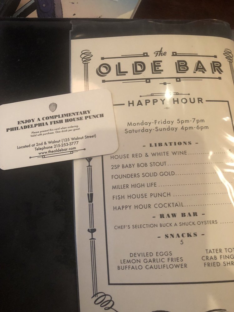 Introducing The Olde Bar, a historic restaurant located in Philadelphia's Old City, offering a mix of lounge, cocktail bar, and seafood dining experiences. With a range of amenities like outdoor seating, free Wi-Fi, and wheelchair accessibility, The Olde Bar caters to a diverse crowd. The menu boasts many vegetarian options and standout dishes like the Warm Lobster Salad, Buffalo Cauliflower, and Herb Marinated Steak. Customers praise the friendly bartenders and the vibrant happy hour specials, making it a great spot for a casual dinner or drinks on the weekends. The atmosphere is intimate yet welcoming, perfect for a solo date or a gathering with friends. With standout dishes like the Chocolate Mousse Cake and Crab Fries, The Olde Bar promises a memorable culinary experience.